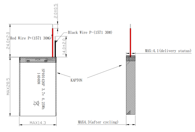 We are offering several hundreds of Li-Polymer cells from our smallest size 360816 (30mAh) to our biggest size 97102165 (10Ah). Let us know what size you need and we can offer you a solution which fits your needs. In any rare cases where we don't have your size yet, we will develop new tooling and provide you with the appropriate solution.